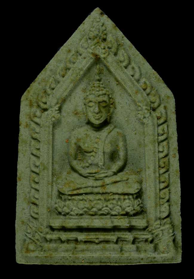 พระพุทธสิหิง เนื้อเขียวพิมพ์เล็ก โรยผงตะไบทอง เกษา สภาพสวย |