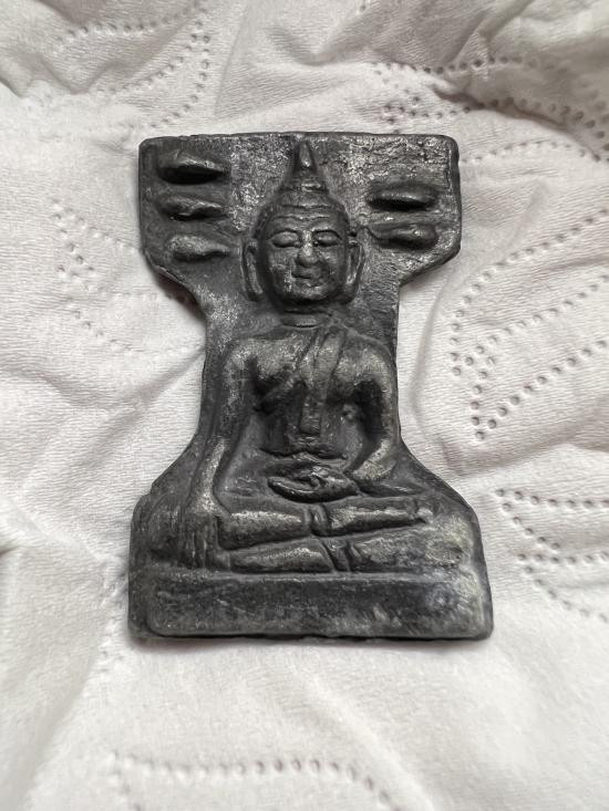 พระพุทธสิหิงค์พิมพ์เล็กเจ้าคุณนร เนื้อใบตองหลังโรยเกษาและผงตะไบทองครับ |