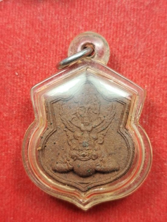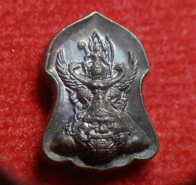 พระนารายณ์ทรงครุฑประทับบนพระราหู ท่านเจ้าคุณธงชัย วัดไตรมิตร เนื้อผงพุทธคุณ รุ่นแรก หลังยันต์ดวง ปี 2545 เนื้อน้ำตาล |