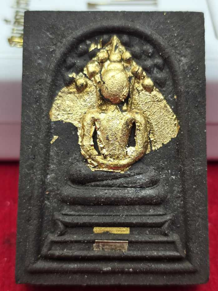 พระผงน้ำมันสมเด็จปรกโพธิ์ รุ่นสร้างโบสถ์ เนื้อผงใบลาน ปิดทอง ฝังตะกุดทองคํา+ตะกรุดเงิน เลข24 พุทธภิเษกที่วัดประดู่ฉิมพลี จัดสร้างโดยวัดบ้านอ้อ |
