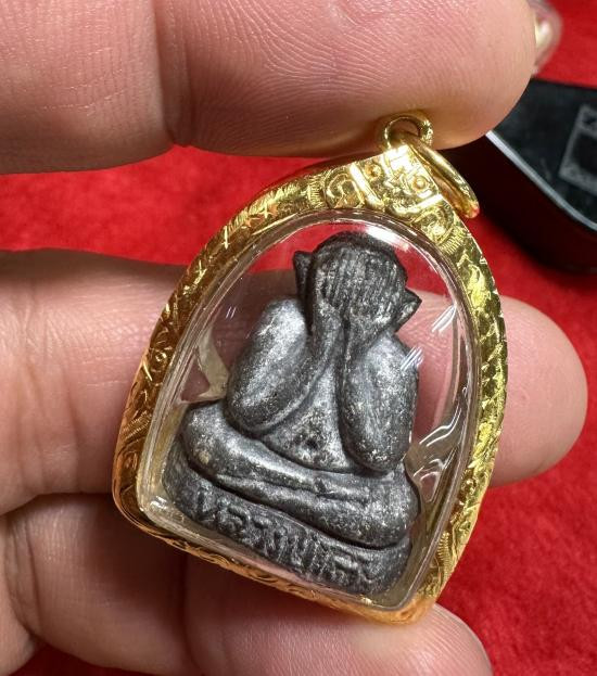 พระปิดตาตุ๊กตาเล็กใบลาน หูแบทแมนเลี่ยมทอง |