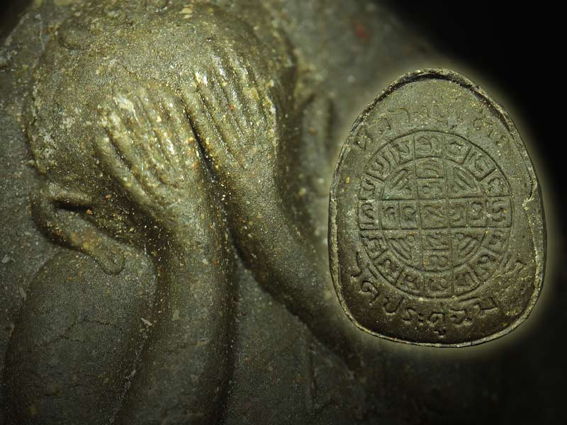 พระปิดตา รุ่น ดวงเศรษฐี แจกในพิธี เนื้อ ผงธูปแก่ตังอิ้ว สร้าง 100 องค์ หมายเลข 21 หลวงปู่โต๊ะ วัดถ้ำสิงโตทอง ราชบุรี มวลสารและพิธีดีมาก มีกล่องเดิมจากวัด |