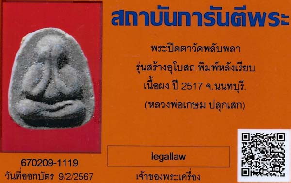 พระปิดตารุ่นเกศมงคล เนื้อผง วัดประดู่ฉิมพลี ปี2524 พร้อมบัตรรับรองG-PRA เก็บแบบสบายใจ |