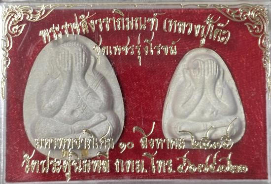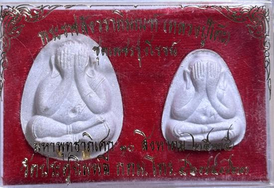 !! เคาะเดียว !! พระปิดตาวัดประดู่ฉิมพลี รุ่นเพชรรุ่งโรจน์ พิมพ์จัมโบ้หลังยันต์นะ ฝังตะกรุดทอง 2 ดอก และ พิมพ์หลังยันต์นะ ตะกรุดเงิน 2 ดอก ปี 2535 กล่องเดิม |
