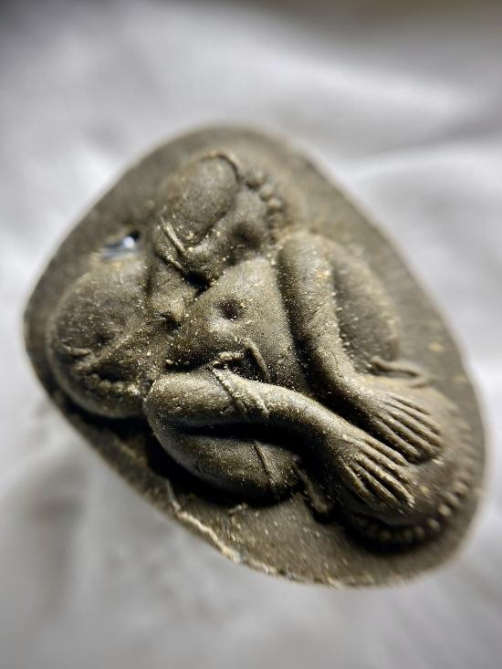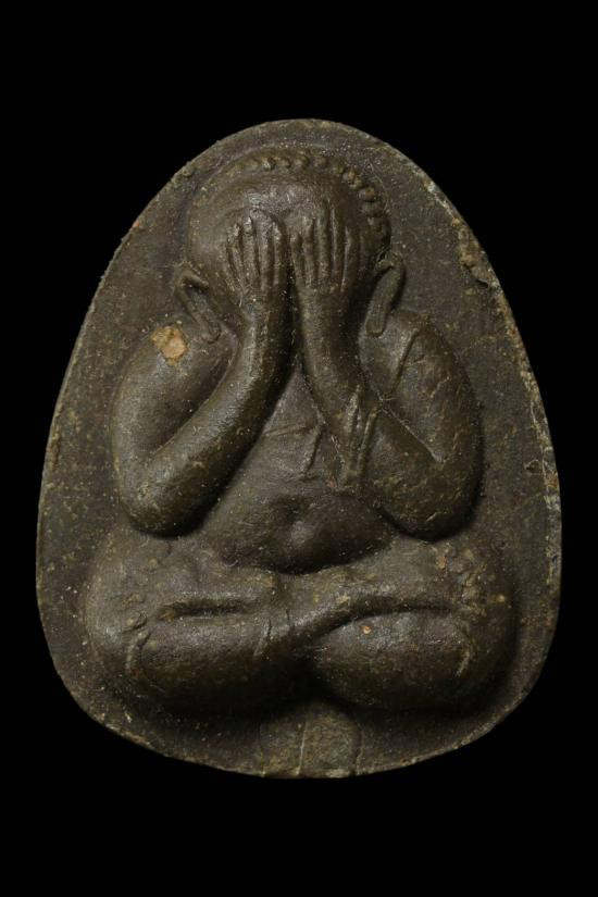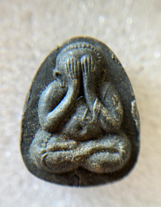 พระปิดตายันดวงเล็กเนื้อดำหนาๆเส้นสายฝนยังติดอยู่ |