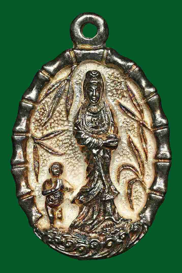 (((วัดใจ)))เหรียญเจ้าแม่กวนอิม วัดซับไม้แดง เนื้อเงิน ปี2518 หลวงปู่โต๊ะแผ่เมตตา |