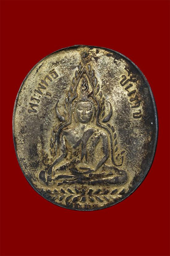 เหรียญพระพุทธชินราช รุ่นแรก ปี2460 เนื้อเงินกาหลั่ยทอง หลังหนังสือ5แถว พร้อมบัตรรับรอง |