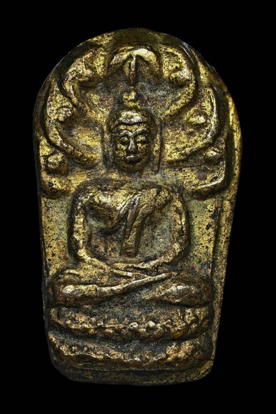 พระนาคปรกใบมะขาม หลวงพ่อเส่ง วัดกัลยา เนื้อทองแดงกะไหล่ทอง ปี2505 จ.กรุงเทพฯ |