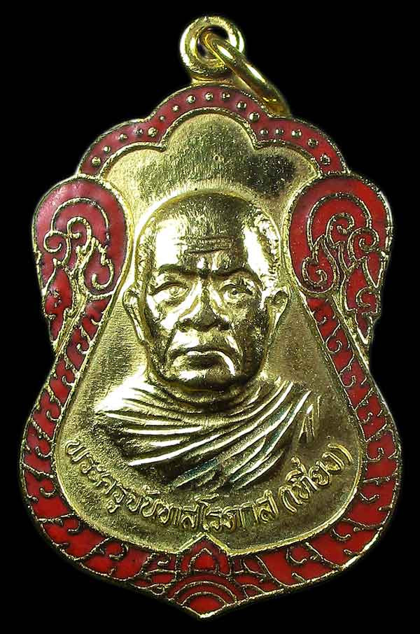 เหรียญหลวงพ่อเที่ยง วัดม่วงชุม ปี2522 จ.กาญจนบุรี เนื้อทองแดงกะไหล่ทองลงยาใหม่ สภาพสวย |