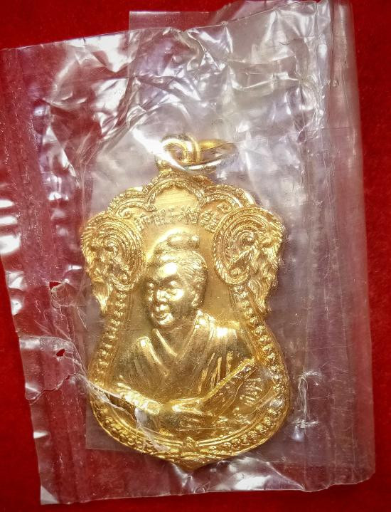 เหรียญ ฮั่นเซียนจื้อโจวซือ หลังพระพุทธ มูลนิธิสาธาณะกุศลสถาน ปี 19...กะไหล่ทอง..ซองเดิม |