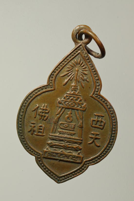 A8866.พระลีลาใบมะขาม 25 ศตวรรษ พิมพ์เล็ก2หน้า เนื้อทองแดง เคาะเดียวเเดง |