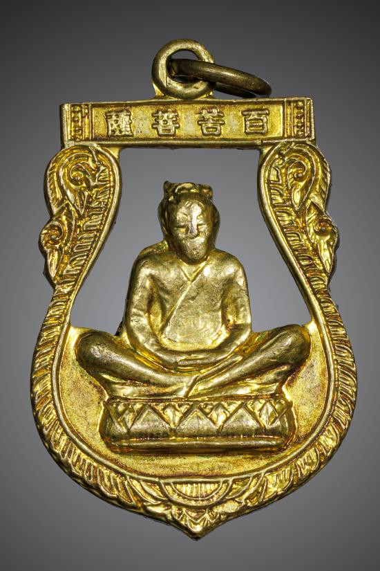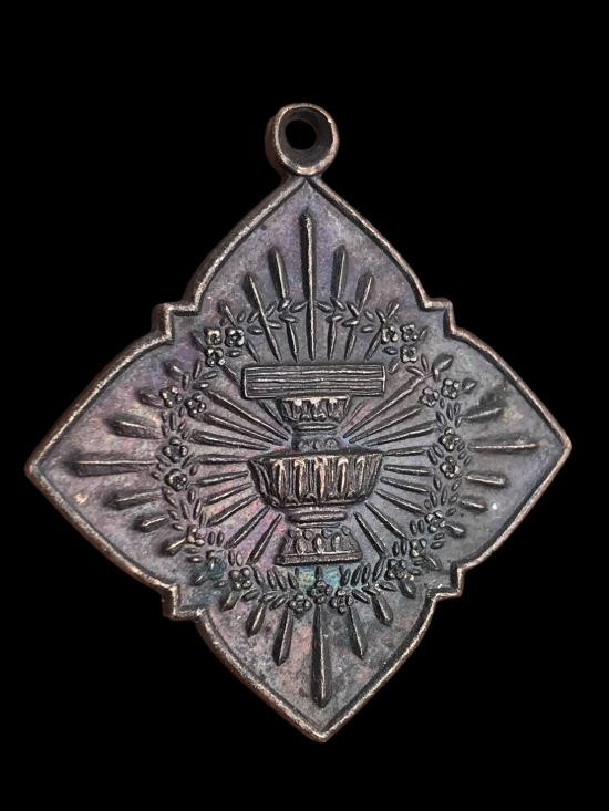 เหรียญลายกนกข้าง เนื้อกะหลั่ยทอง หลวงพ่อเก๋ วัดปากน้ำ นนทบุรี พ.ศ.2518 |
