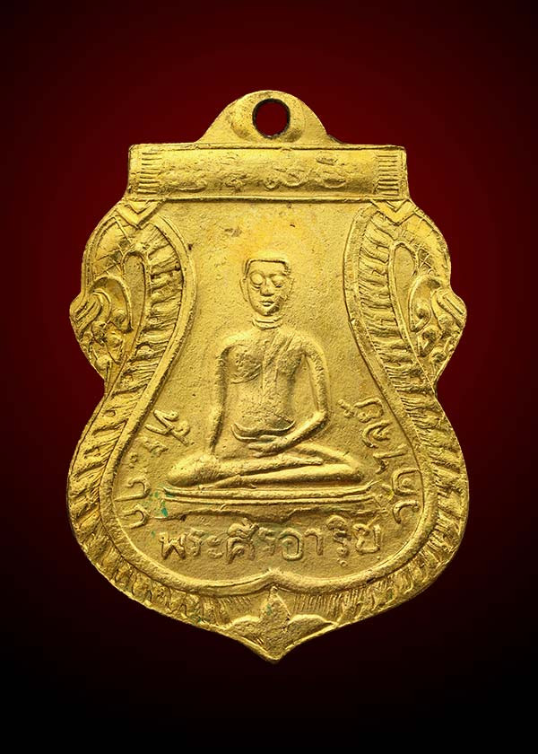 เหรียญพระศรีอาริย์ วัดไลย์ จ.ลพบุรี ปี 2467 เนื้อทองแดงกะไหล่ทอง |