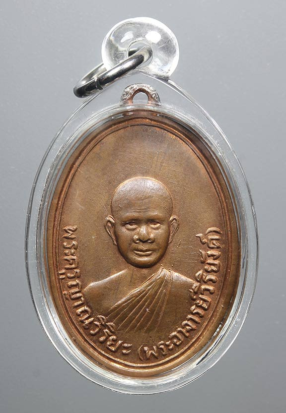 เหรียญกลม หลวงพ่อจง วัดหน้าต่างนอก พิมพ์หลังสิงห์ (๓ ใหญ่) เนื้อทองแดง ปี 2502 พร้อมบัตร |