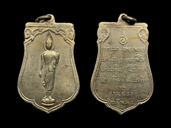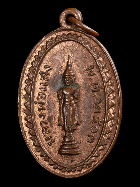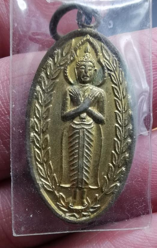 เหรียญพระลีลากำแพงนิ้ว หลวงพ่อขอม วัดไผ่โรงวัว จ.สุพรรณบุรี ปี 2505 |
