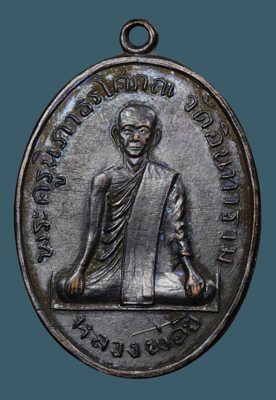 เหรียญจิ๊กโกํใหญ่ หลวงพ่อเงิน วัดดอนยายหอม เนื้ออาปาก้า ปี2511 จ.นครปฐม |