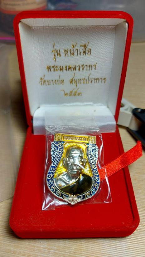 เหรียญหลวงพ่อชาญวัดบางบ่อ รุ่นหน้าเสือ เนื้อเงินลงยา |