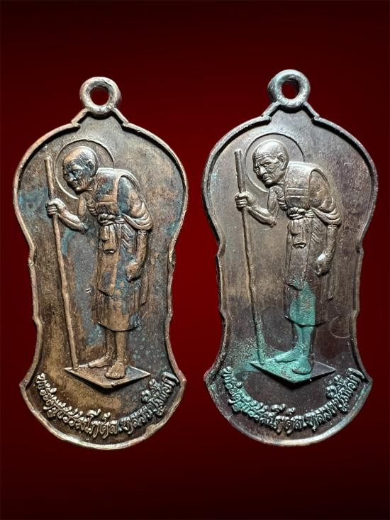((เคาะแรก 2 เหรียญ)) เหรียญไม้เท้า หลังยันต์พิมพ์เล็ก หลวงปู่เผือก วัดสาลีโข นนทบุรี ปี 2522 เนื้อทองแดง |