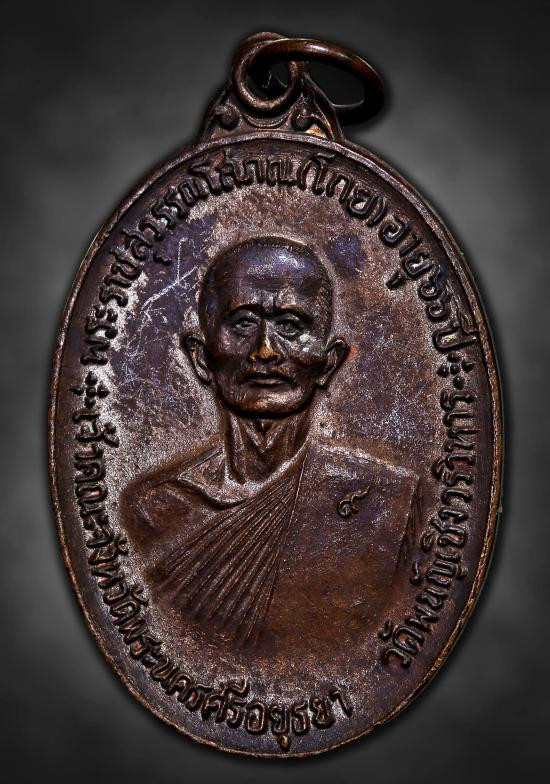 เหรียญหลวงพ่อเงิน วัดดอนยายหอม รุ่นสุดท้าย ปี พ.ศ. 2518 เนื้อทองแดง พิมพ์นิยม "ส.ขีด" |