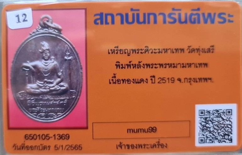 ## เหรียญพระศิวะมหาเทพ หลังพระพรหม...พิธีพรหมศาสตร์ ปี 2519 อาจารย์ชุม ไชยคีรี ออกที่ วัดทุ่งเสรี หัวหมาก พิธีเดียวกับ ศิวะลึงค์ และ มีดหมอ รุ่นแรก ของท่าน พิธีใหญ่มาก พร้อมบัตรรับรอง ....(อ.ชุม ไชยคี |