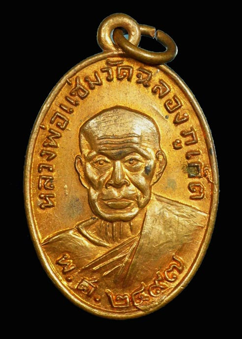 เหรียญรุ่นแรกหลวงพ่อช้าง วัดศิลามูล จ.นครปฐม เนื้อทองแดง ปี 2500 |