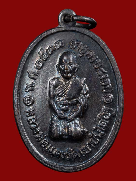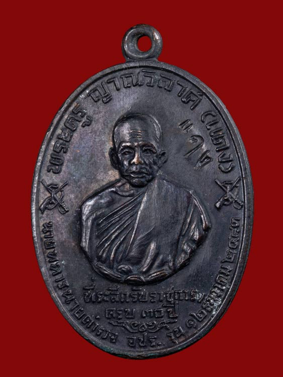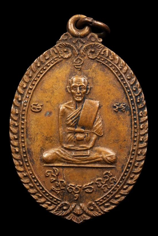 เหรียญรุ่นแรก หลวงพ่อบุญเรือง วัดวังขอน เนื้อทองแดงรมดำ ปี 2519 จ.ปราจีนบุรี |