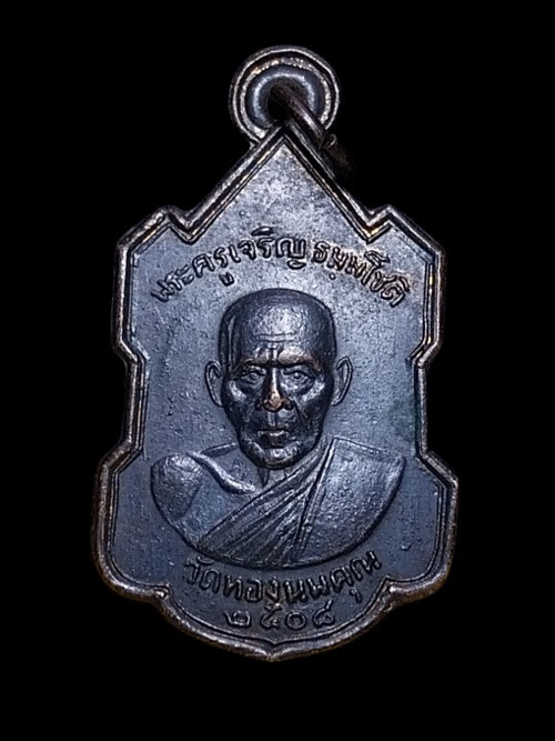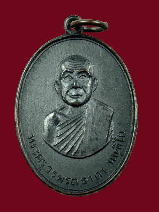 -วัดใจเคาะเดียวแดง-เหรียญพระครูวรพรตธาดา นนฺทิโย วัดตาลปากลัด ต.คุ้งพยอม อ.บ้านโป่ง เนื้อทองแดงรมดำ |