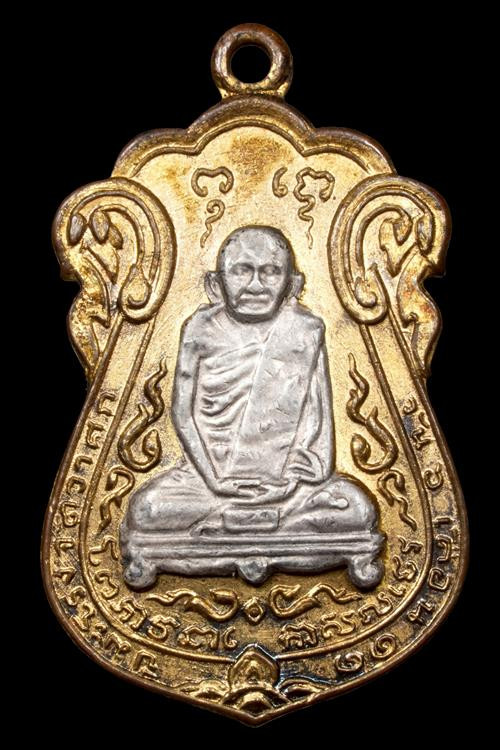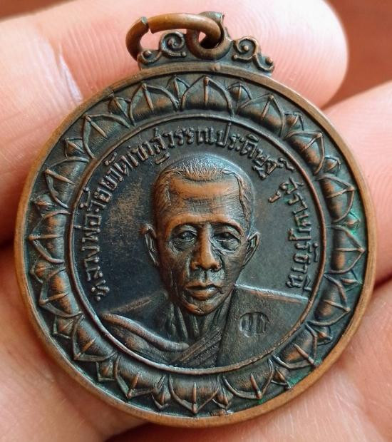 เหรียญไตรมาส(M16) หลวงพ่อแพ วัดพิกุลทอง ปี 2513 เนื้อทองแดงรมดำ จ.สิงห์บุรี |