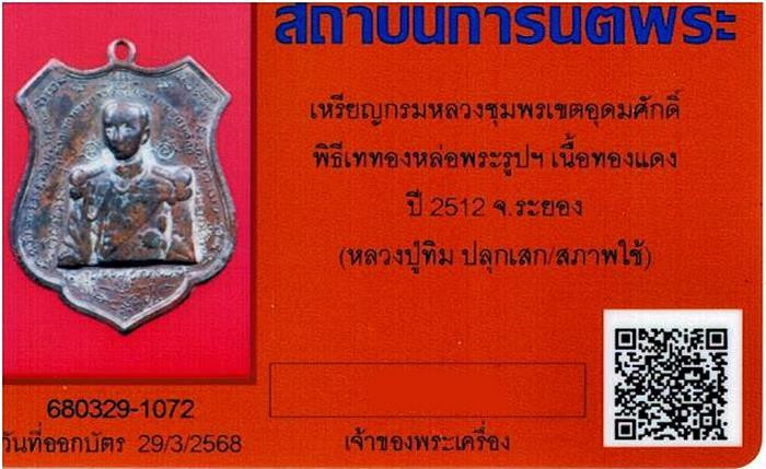 เหรียญกรมหลวงชุมพร ปากน้ำประแสร์ ปี 12 หลวงปู่ทิม ปลุกเสก เนื้อทองแดง สภาพใช้ พร้อมบัตรรับรอง |