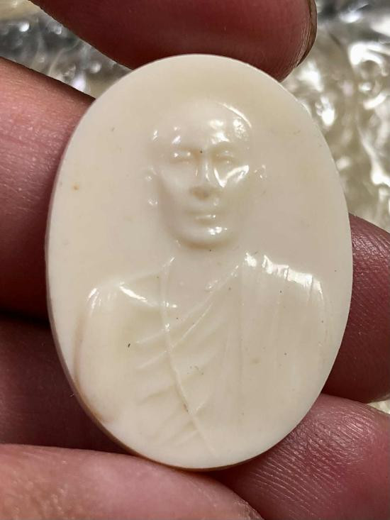 เหรียญพลาสติกหลวงพ่อโอภาสี หลังยันต์สวัสดิกะ สีขาวงาช้าง รุ่นแรก พ.ศ.2495 |