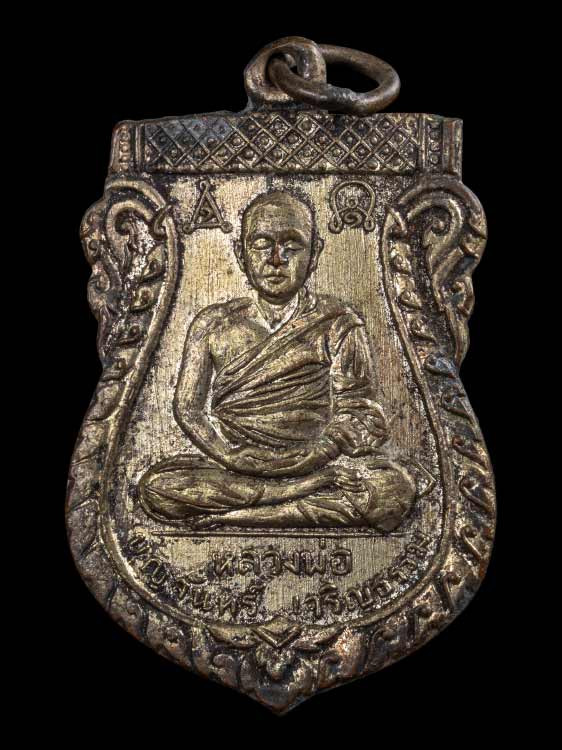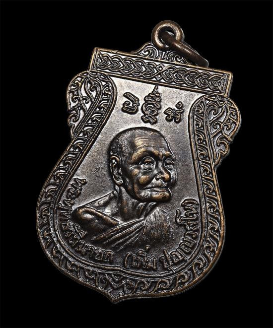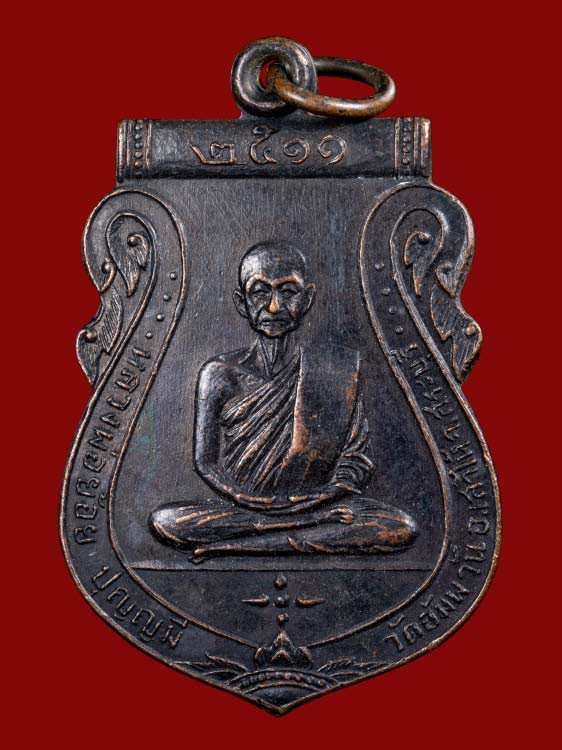 เหรียญรุ่นแรก หลวงพ่อพิณ วัดอุบลฯ จ.ราชบุรี เนื้อทองแดงรมดำ ปี 2499 |
