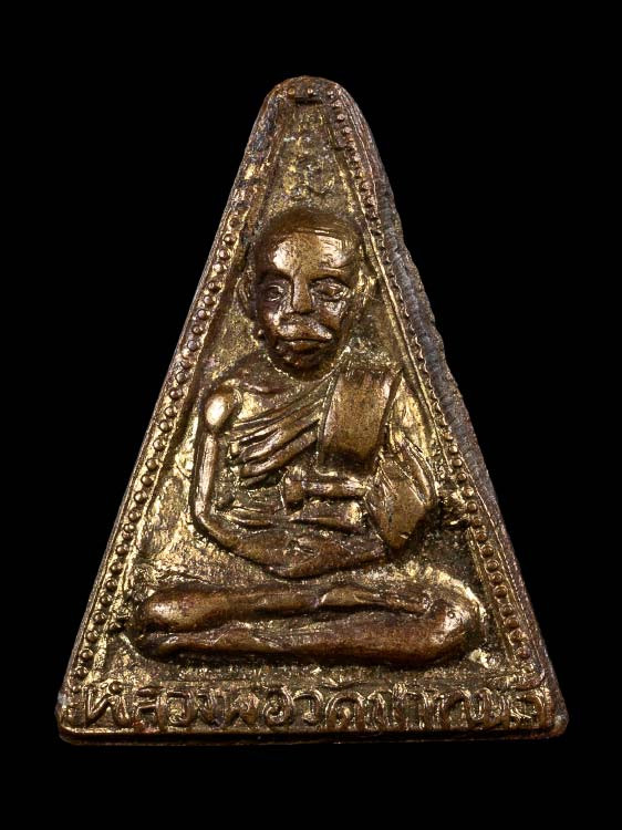 เหรียญรุ่นแรก หลวงพ่อพิณ วัดอุบลฯ จ.ราชบุรี เนื้อทองแดงกะไหล่ทอง ปี 2499 |