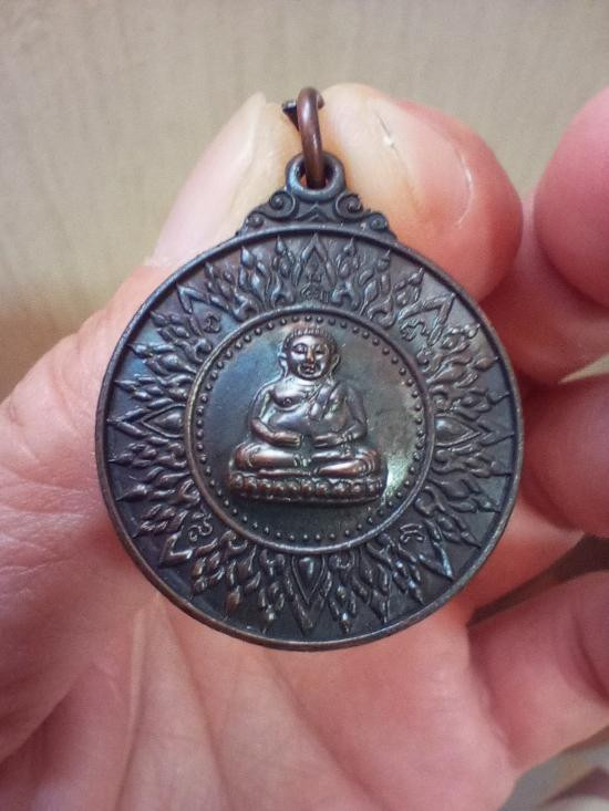 A8810.เหรียญพระฮ่อเม้ง หลังยันต์ ๕ วัดหนองมนน้อย เนื้อทองเเดงรมดำ เคาะเดียวเเดง |