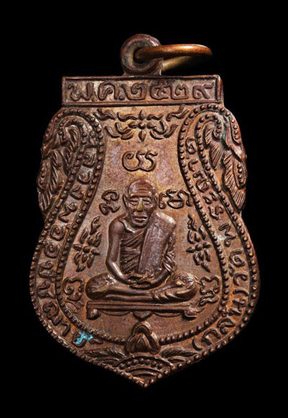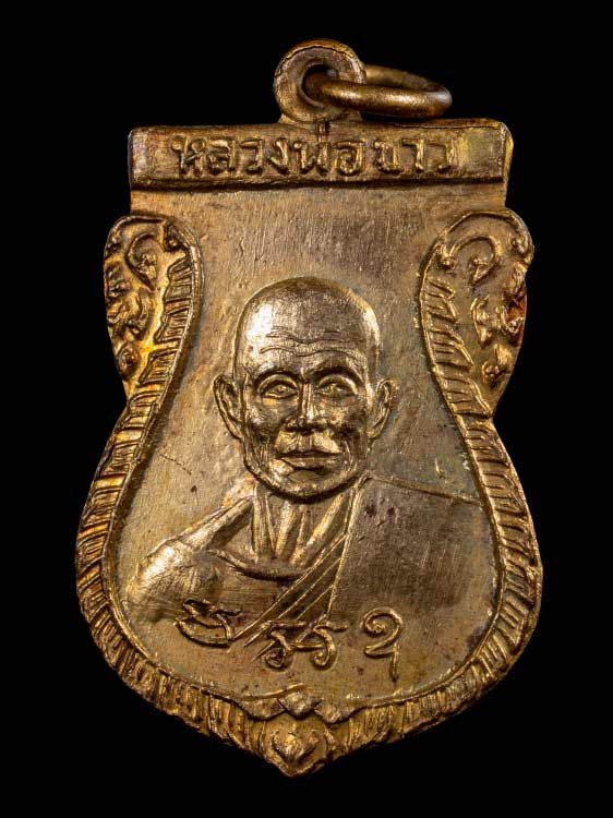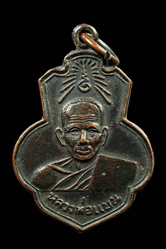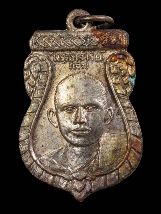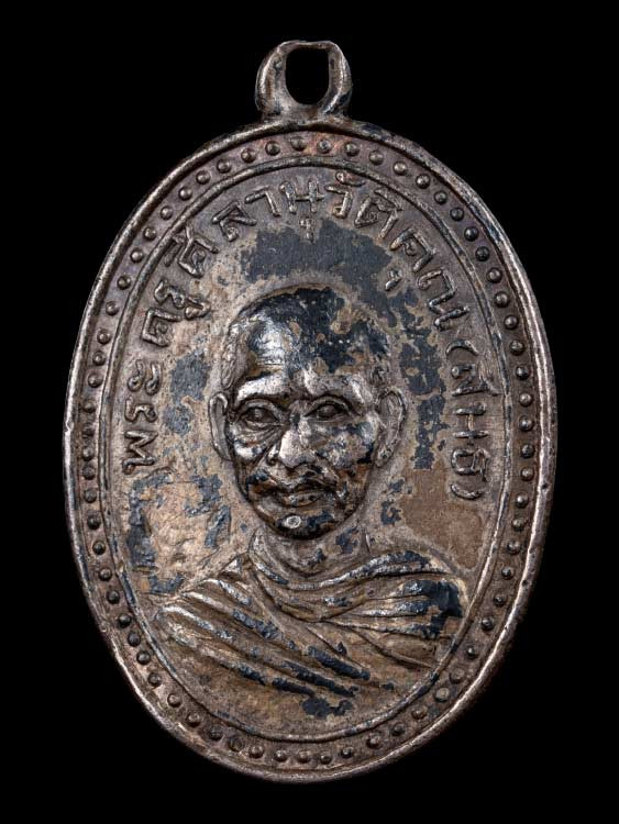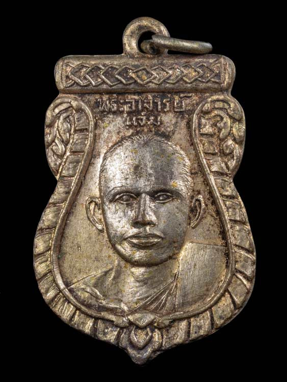 เหรียญหลวงพ่อหอม วัดชากหมาก บ้านฉาง จ.ระยอง รุ่นแรก ๒๔๙๘ บล็อกหน้าโหนก พิมพ์นิยม 4 ชาย |