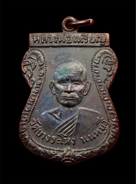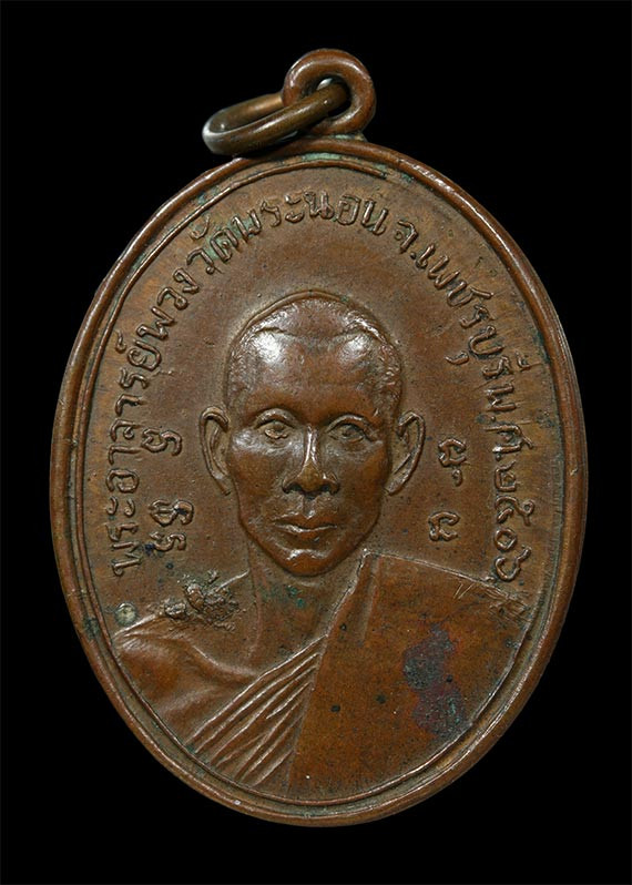 เหรียญหลวงพ่อน้อม วัดแพรกษา จังหวัดสมุทรปราการ ปี 2521 เนื้อทองแดงรมดำสภาพตามรูปราคาเบาๆ |