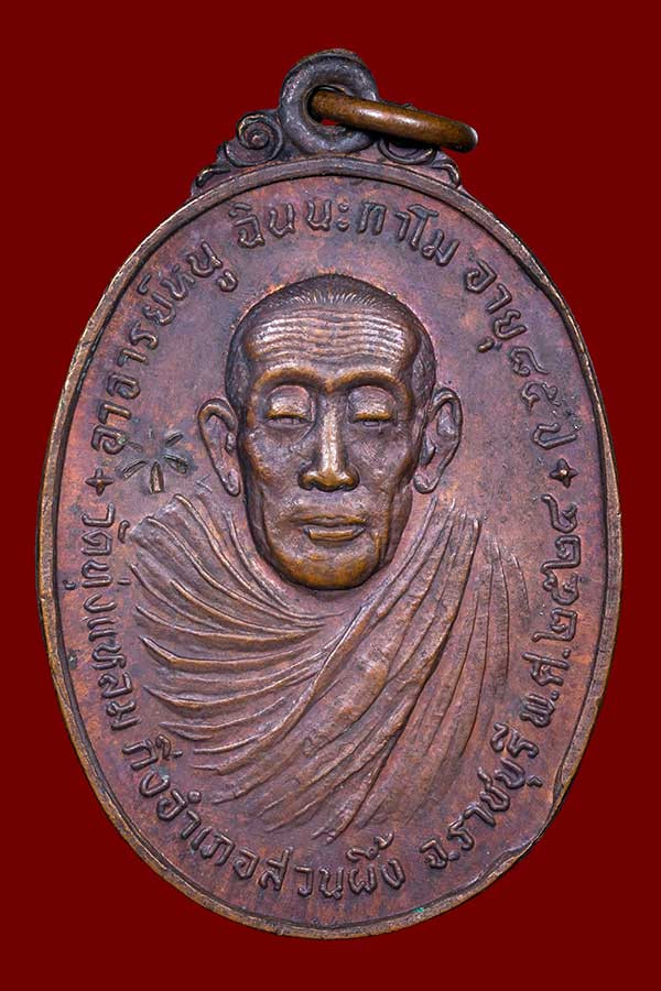 เหรียญหลวงพ่อวัดป่าแป้น เสาร์ห้า ปี2516 เนื้อทองแดงรมดำ |