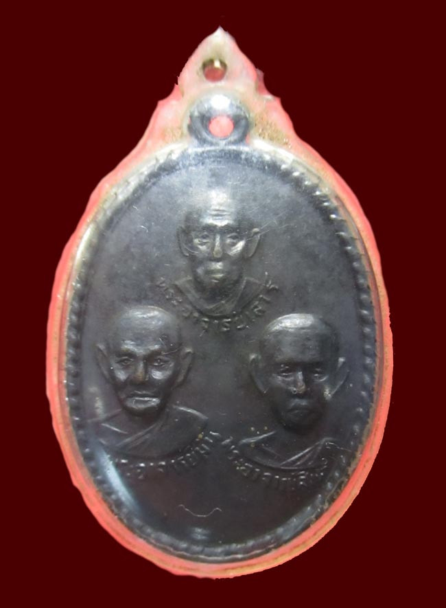 เหรียญสามพระอาจารย์ หลวงปู่เสาร์,หลวงปู่มั่น,พระอาจารย์สิงห์ วัดป่าสาลวัน ปี 2518 |
