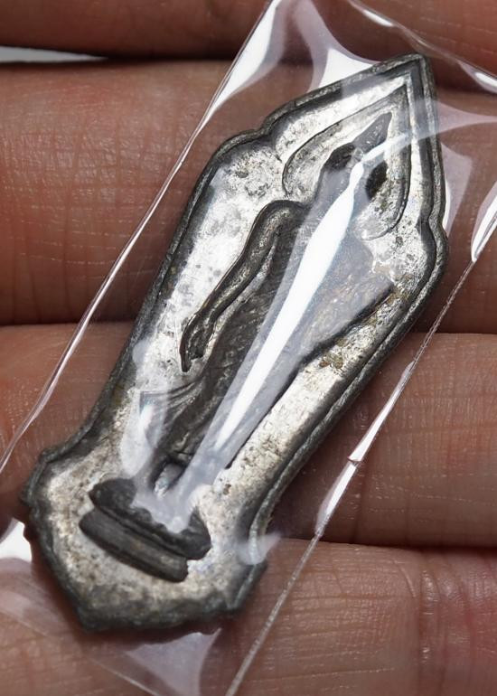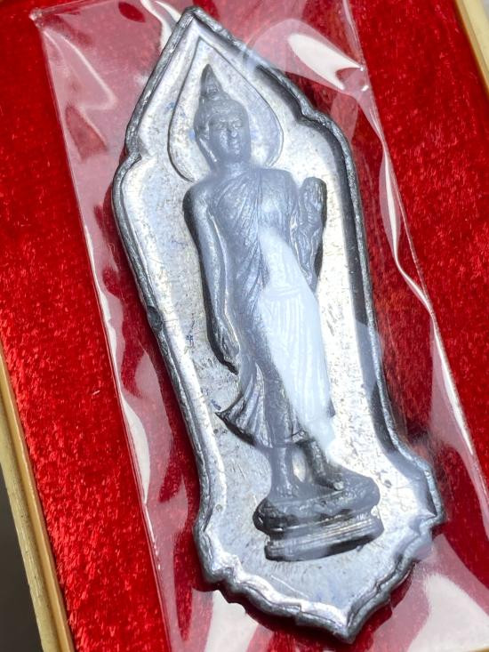 พระลีลา 25 พุทธศตวรรษ เนื้อตะกั่ว บล็อกพระศกจุด ปี 2500 มีกล่อง แดงเคาะแรก |