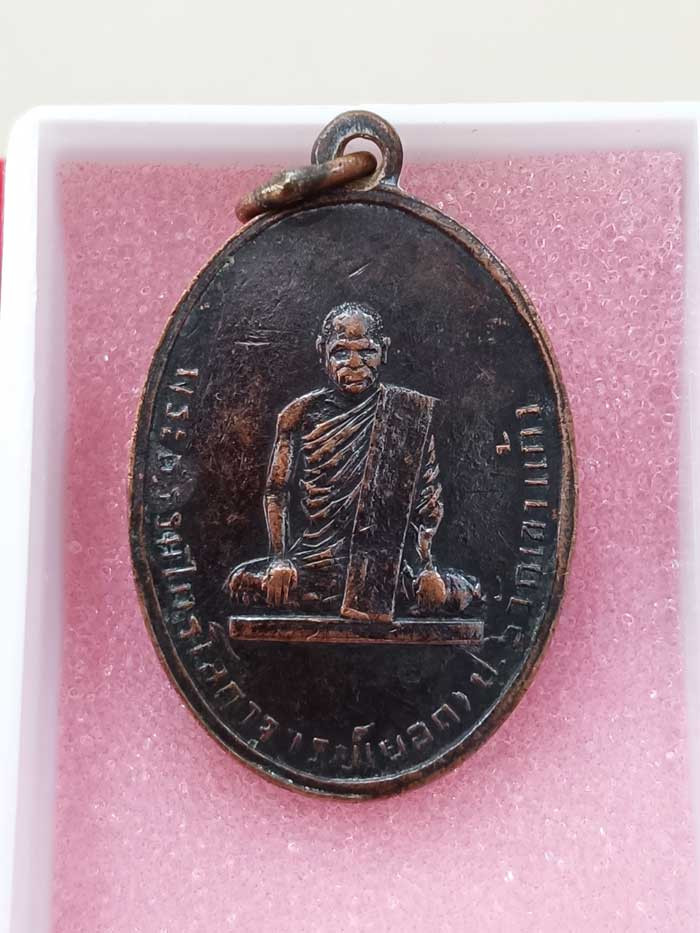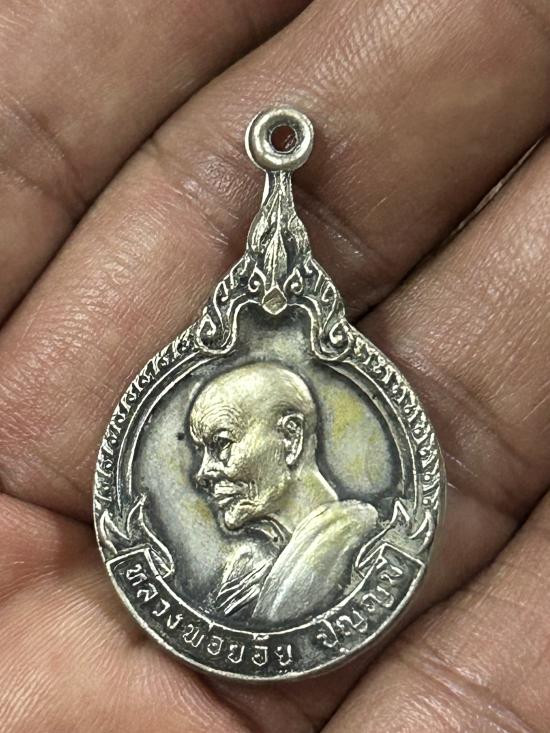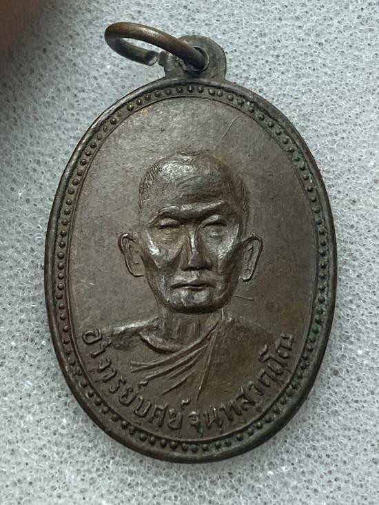 . เหรียญหลวงพ่อย้อย วัดอัมพวัน จังหวัดสระบุรี รุ่นยกช่อฟ้า ปี 2519 เนื้อทองแดงกะหรั่ยเงิน |