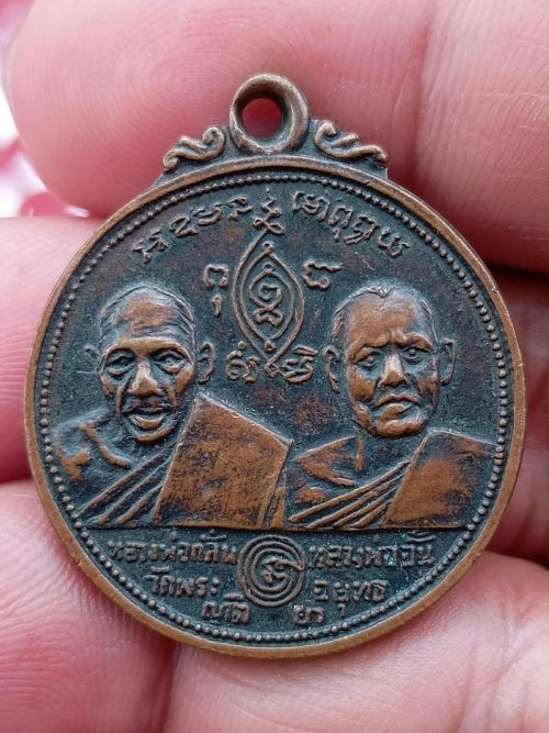 เหรียญหน้าหลวงพ่อแดง หลังหลวงพ่อเจริญ สภาพสวย |
