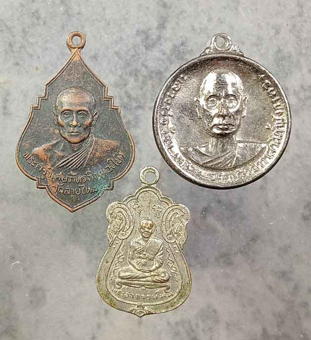 เหรียญรุ่นแรก หลวงพ่อทองใบ วัดสายไหม ปี2516 +เหรียญหลวงพ่อจ้อย วัดถ้ำมังกรทอง กาญจนบุรี ปี16 + เหรียญพระอาจารย์หนู วัดพันธุวงษ์ จ.สมุทรสาคร |