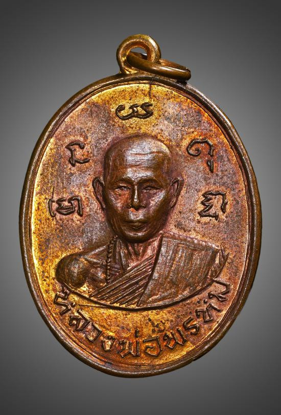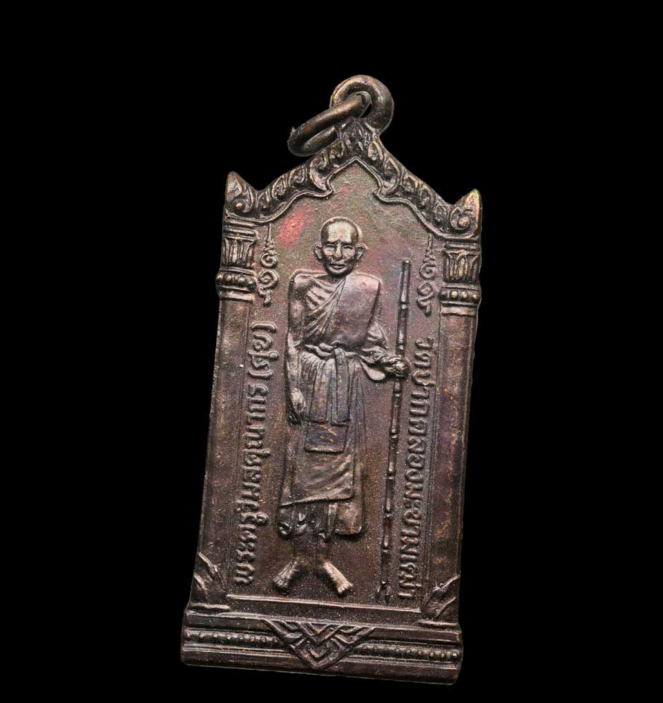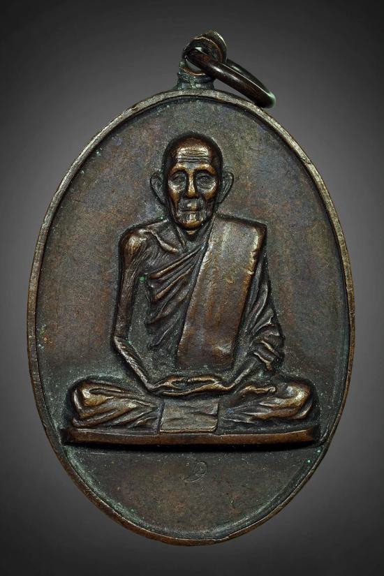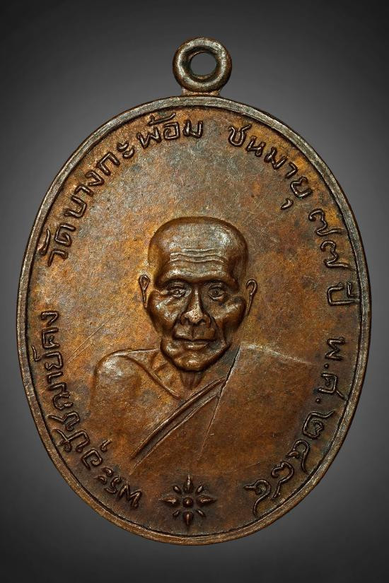 เหรียญรูปเหมือน งาคู่ หลังสิงห์ เนื้อทองแดง หลวงพ่อหอม วัดซากหมาก ระยอง ปี2520 |
