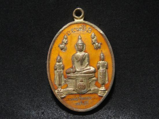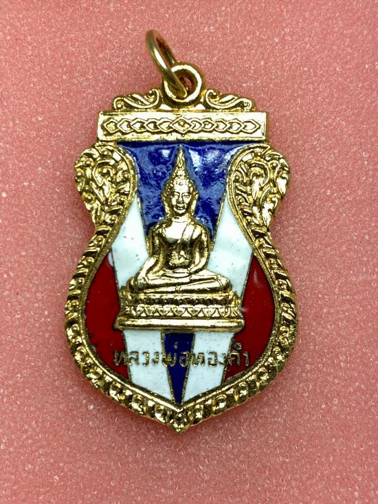 เหรียญหลวงพ่อเส็ง วัดบางนา ปทุมธานี ปี 2523 กระหลั่ยทอง ลงยาสีแดง |