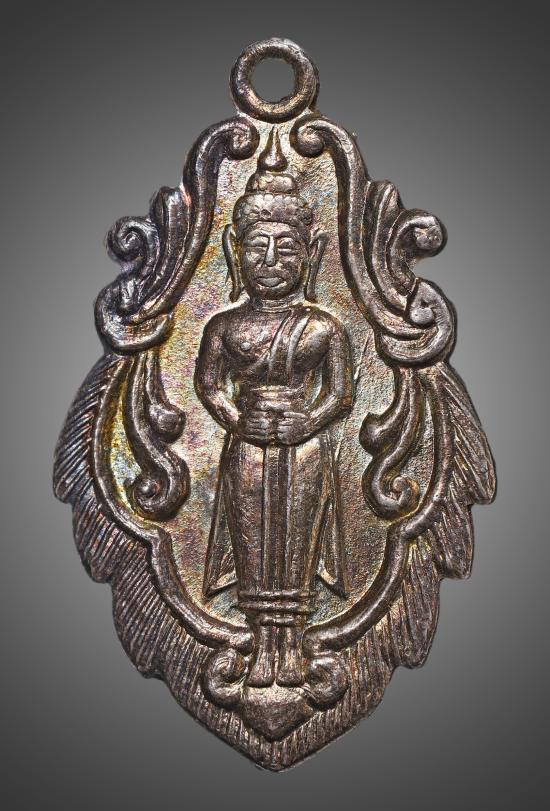 เหรียญรุ่นแรก หลวงพ่อ ฮ้อ วัดอัมพวัน จ.สมุทรสงคราม เนื้อเงินโบราณ ปี 2466 |