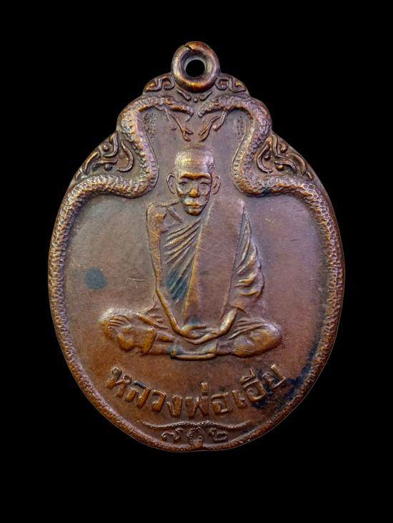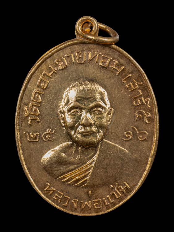 เหรียญหลวงพ่อหอม วัดซากหมาก รุ่นแรก พิมพ์หน้าหนุ่ม เนื้อทองแดงรมดำ ปี 2498 |