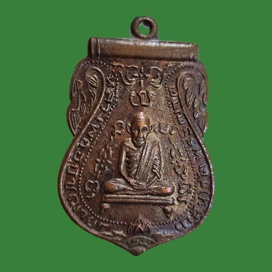 วัดใจเคาะเดียว........100.......เหรียญเสมา หลวงพ่อขอม วัดไผ่โรงวัว สุพรรณบุรี ปี 2507 ทองแดงรมดำ ห่วงเชื่อมเดิม สวย |