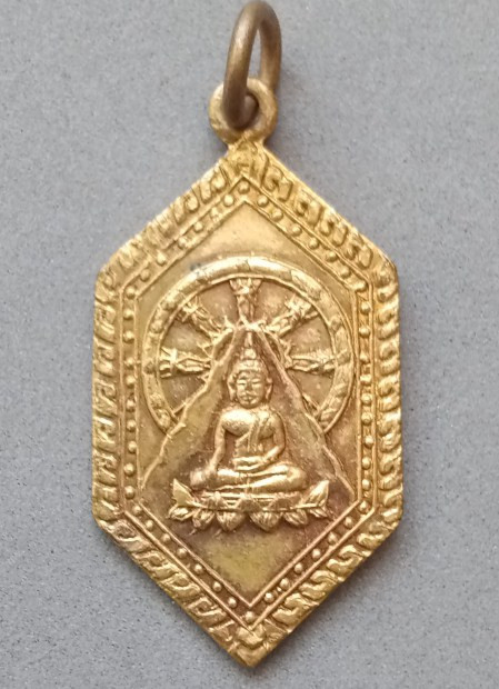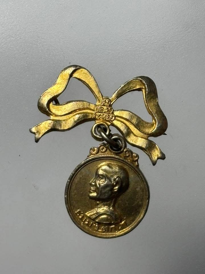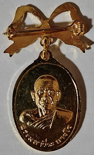 เหรียญกลมเล็ก ท่านเจ้าคุณนรฯ พร้อมโบว์เข็มกลัด หลังยันต์น้ำเต้า |