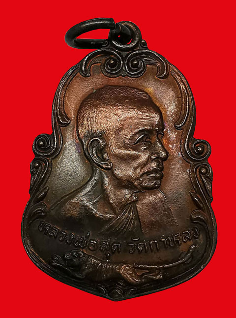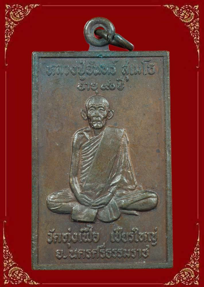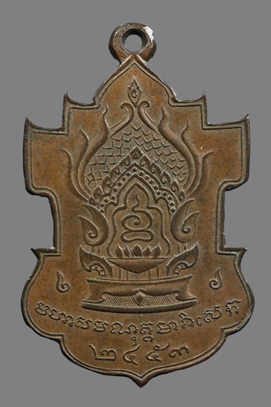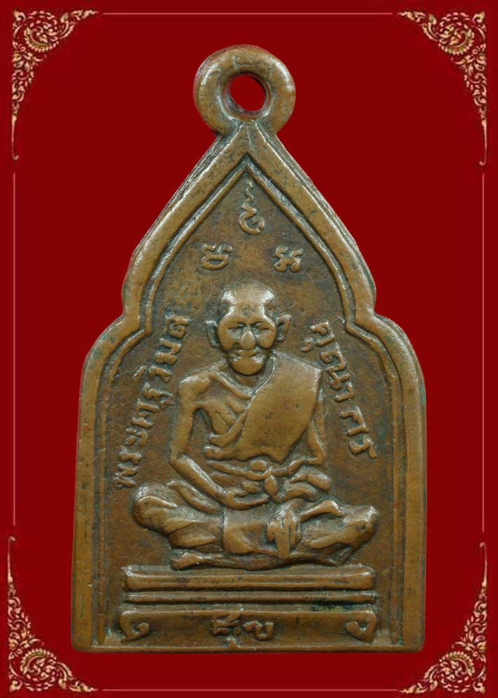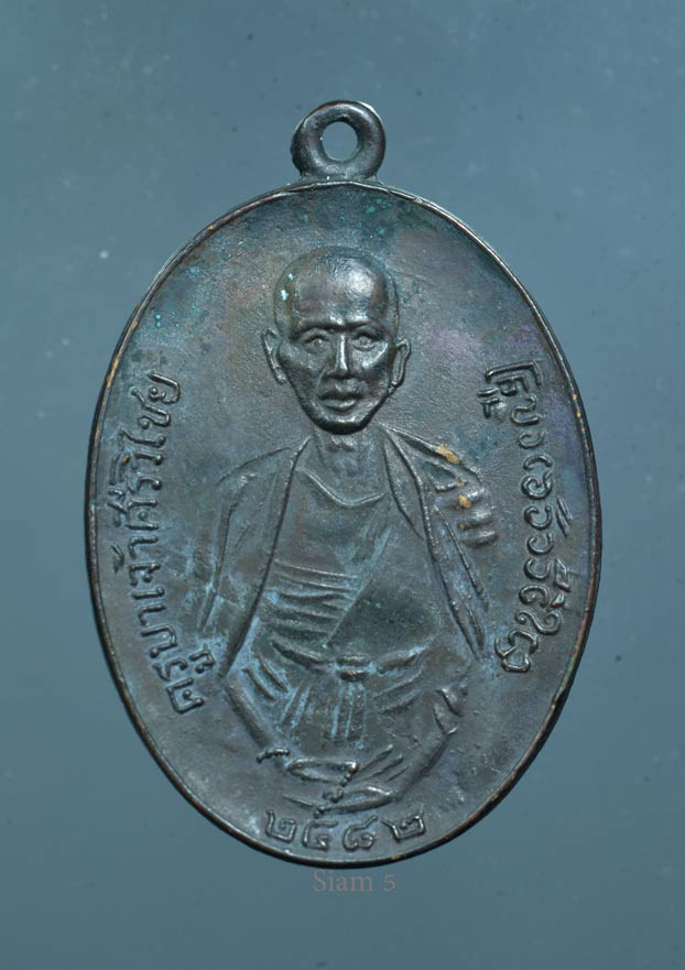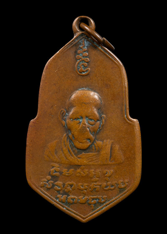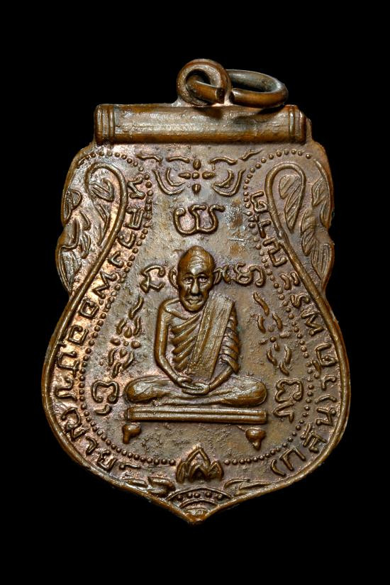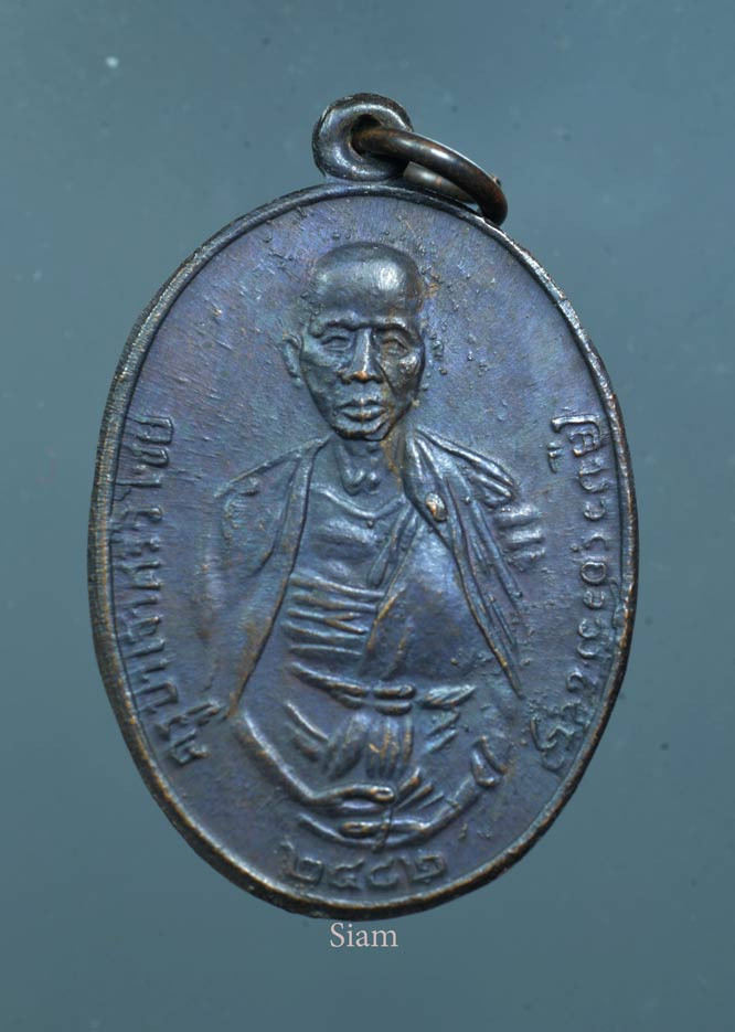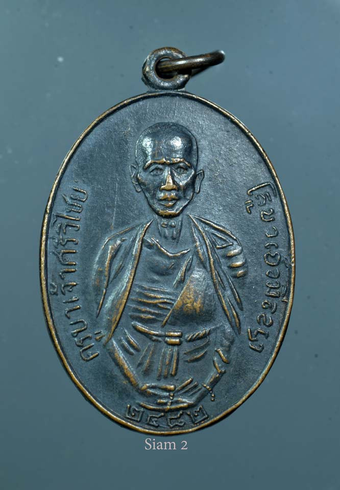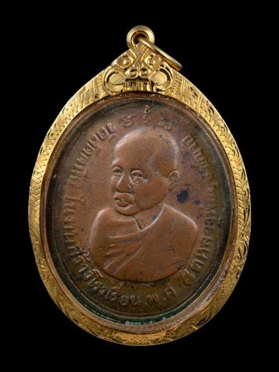 เหรียญหลวงพ่ออี๋ วัดสัตหีบ รุ่นสร้างโรงเรียน เนื้อทองแดง จ.ชลบุรี ปี พ.ศ. 2483 สภาพใชและตัดหู พร้อมเลี่ยมทอง+บัตรการันตีพระ |