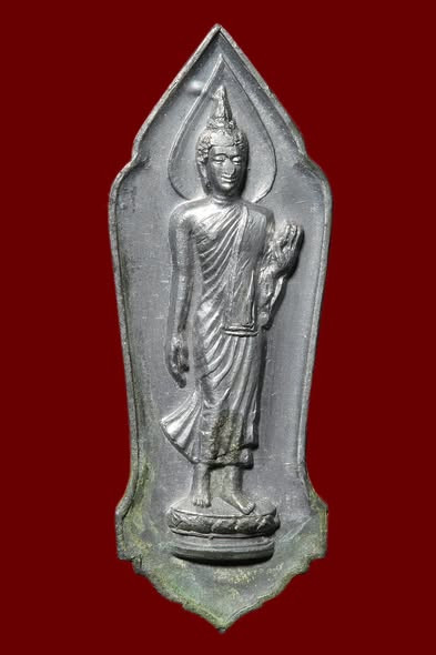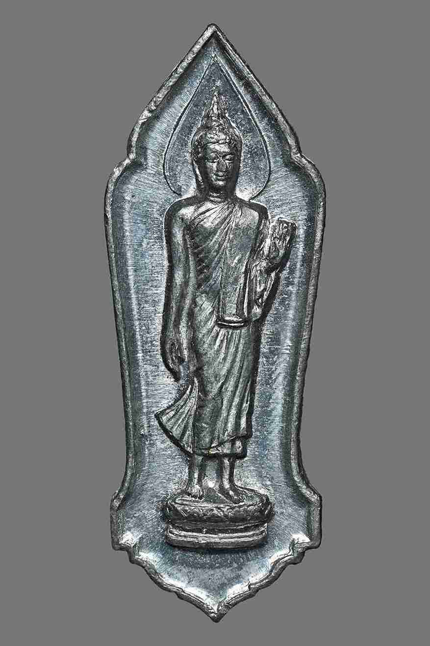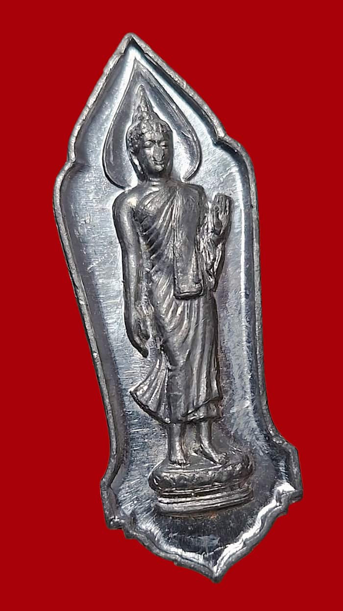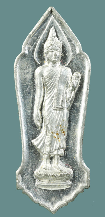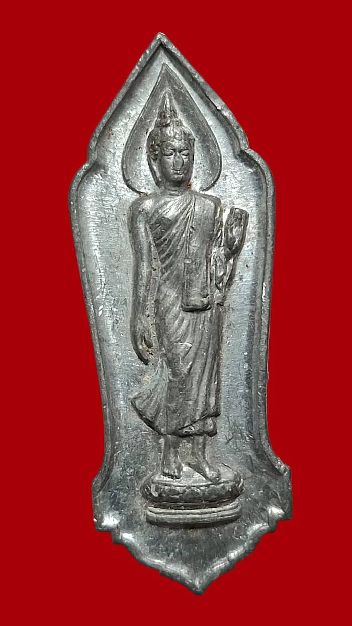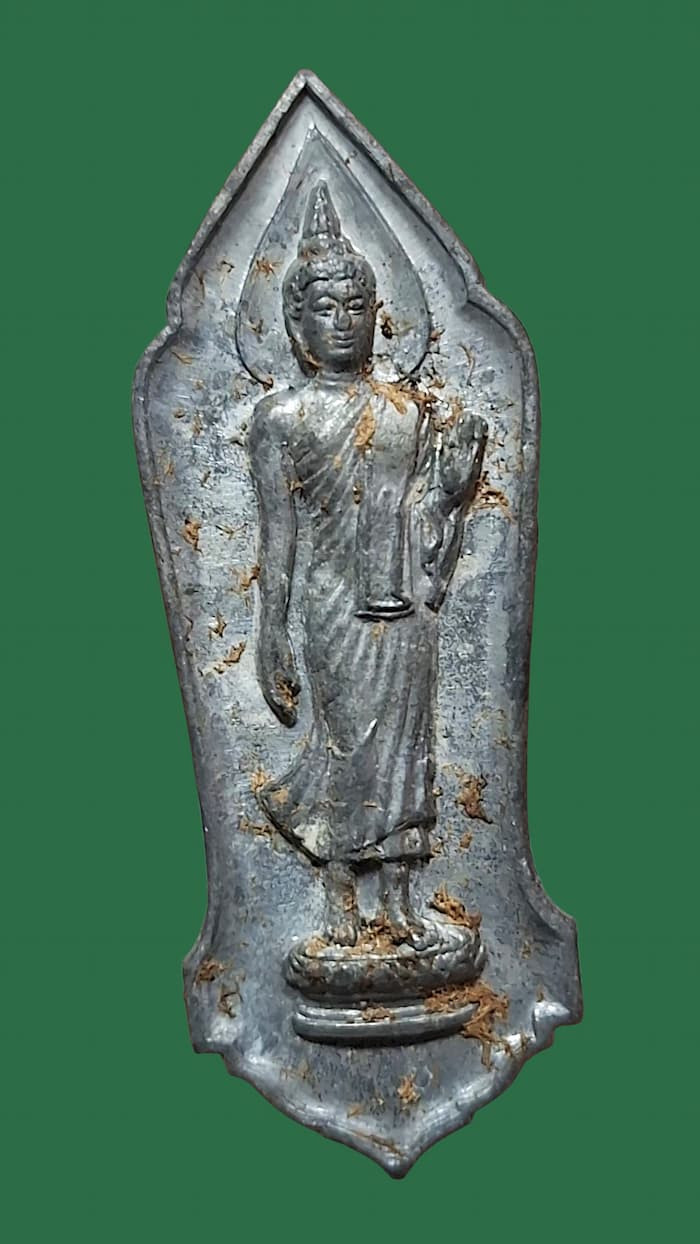 (((วัดใจ)))พระลีลา 25 พุทธศตวรรษ ปี พ.ศ.2500 เนื้อชินตะกั่ว บล็อคสังฆาฏิจุด ผิวกระจกตัวจริงครับผม |
