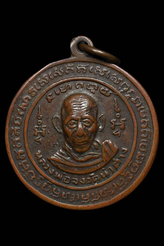 เหรียญกลม หลวงพ่อจง วัดหน้าต่างนอก พิมพ์หลังสิงห์ (๓ ใหญ่ มีกลาก) เนื้อทองแดง ปี 2502 |